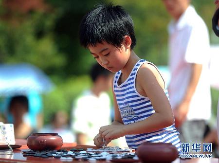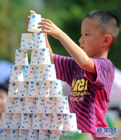 近日,一位小選手在參加分裝圍棋比賽,這項比賽要求選手在60秒鐘內將混在一起的圍棋按黑白全部裝入兩個棋罐內。當日,長沙市首屆全民健身節“非常60秒”社區趣味運動會在長沙市咸嘉新村中心廣場舉行。運動會設置了鉆呼啦圈、夾玻璃球、分裝圍棋等趣味闖關游戲,每一項游戲要求參賽選手必須在60秒內完成,以考驗選手的反應速度和協調能力。許多家庭全家出動參與其中,在炎炎夏日享受運動的趣味。