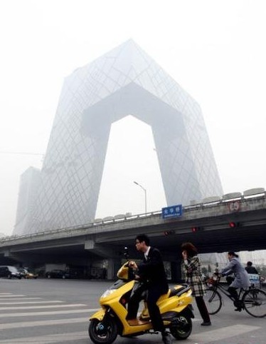 中央氣象臺11月1日6時發布大霧藍色預警:預計,今天早晨到上午,遼寧、華北、黃淮南部和西部、江淮、江漢、西南地區東部、江南、華南北部等地有輕霧,其中,遼東半島、北京南部、河北中部、河南中部、江蘇大部、安徽南部、浙江西北部、江西北部等地有能見度不足1000米的霧,部分地區能見度不足500米。圖為10月31日下午,北京市中央電視臺新址仍被大霧彌漫。中新社發 張浩 攝