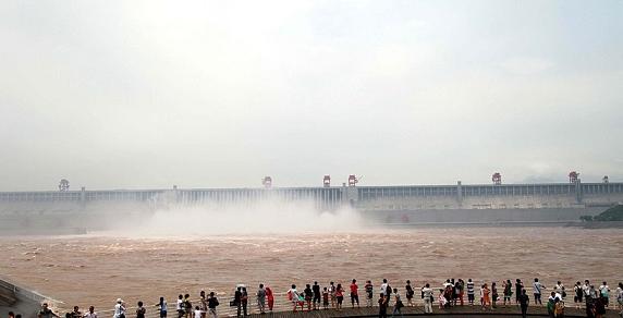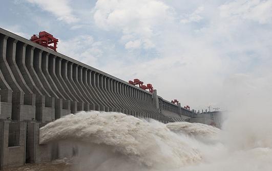 7月24日14時,長江上游特大洪峰抵達三峽水庫,峰值達7萬立方米每秒,為三峽水庫2009年建成運用以來最大洪峰。三峽樞紐以4.324萬立方米每秒流量下泄,削峰2.76萬立方米/秒,緩解了長江中下游的防洪壓力。圖為三峽大壩泄洪。