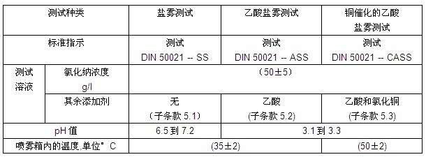 此標準對樣品,測試持續時間或者結果評估無關,除非有相關說明,標準中列出的3個方法在任意單獨的例子中應該被認為是主要的方法,此標準對測試的說明適應腐蝕保護系統的有效性和快速發現缺點,他不適用與特定的對比基質金屬更基礎的金屬做的涂層的測試,盡管此例子中,此基質被連接的涂層保護,此測試是DIN 50900第三部分中的有催化劑的腐蝕性測試,已測試的零件不直接提供信息,同樣的因為在測試中腐蝕性影響和在使用中可能出現的實際情況可能不同,并且那些隨之發生的不同的腐蝕性過程也被包括在內,不同腐蝕保護系統的性能只有當條件充分接近時候才能進行相互比較。