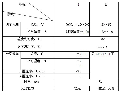 高低溫試驗箱產(chǎn)品性能劃分(備注:試驗箱按使用性能分為ⅠⅡ兩類其性能指標(biāo)見下表)