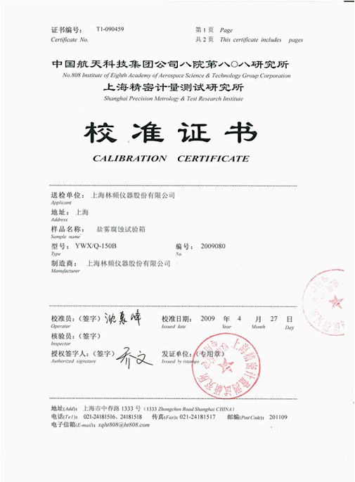 首頁(yè) > 新聞中心 > 林頻股份—鹽霧腐蝕試驗(yàn)箱校準(zhǔn)證書